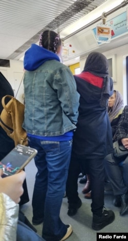 در ایستگاه، تمام زنان با شال، چادر و یا روسری وارد شدهاند، اما بهتدریج و در طول مسیر تعداد زنان بدون پوشش موی سر بیشتر میشود. اکثرشان متعلق به نسل جوانی هستند که در نوع پوشششان از سبکهای بهروزتر و متفاوتتری هم استفاده میکنند.